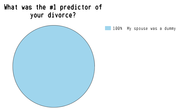 You have probably seen numerous articles about the # 1 predictor of divorce. But all of these articles are wrong. Or to be more specific, they all give different examples of the # 1 predictor, and we know very well that there can only be ONE true #1. (Except in the case of EGD, where both Jessica and Jeanne are #1.) Some of the alleged #1 predictors are: